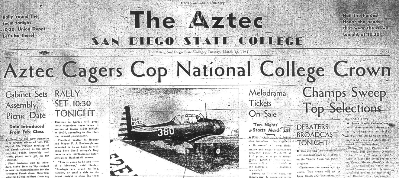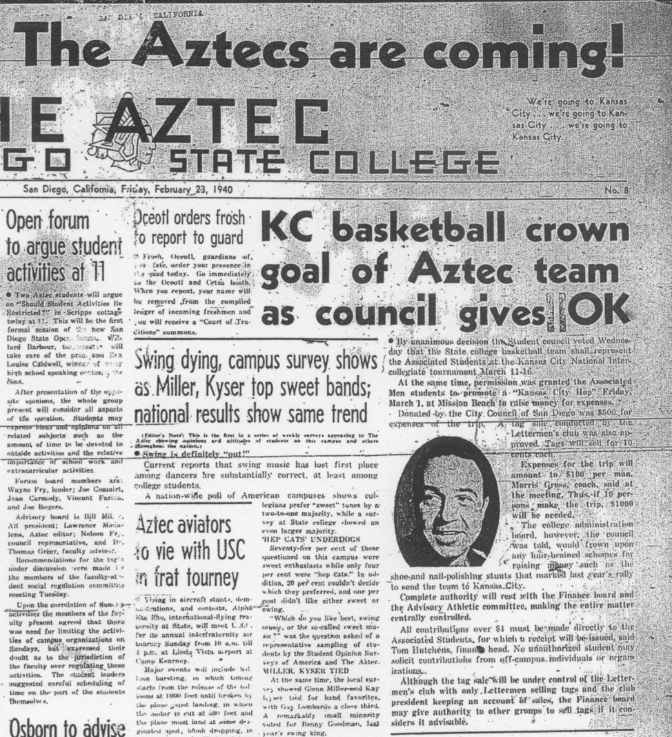 As Conference champion the Aztecs were invited to basketball pioneer John Naismith’s National Association of Intercollegiate Basketball “small college” post-season tournament held in Kansas City.